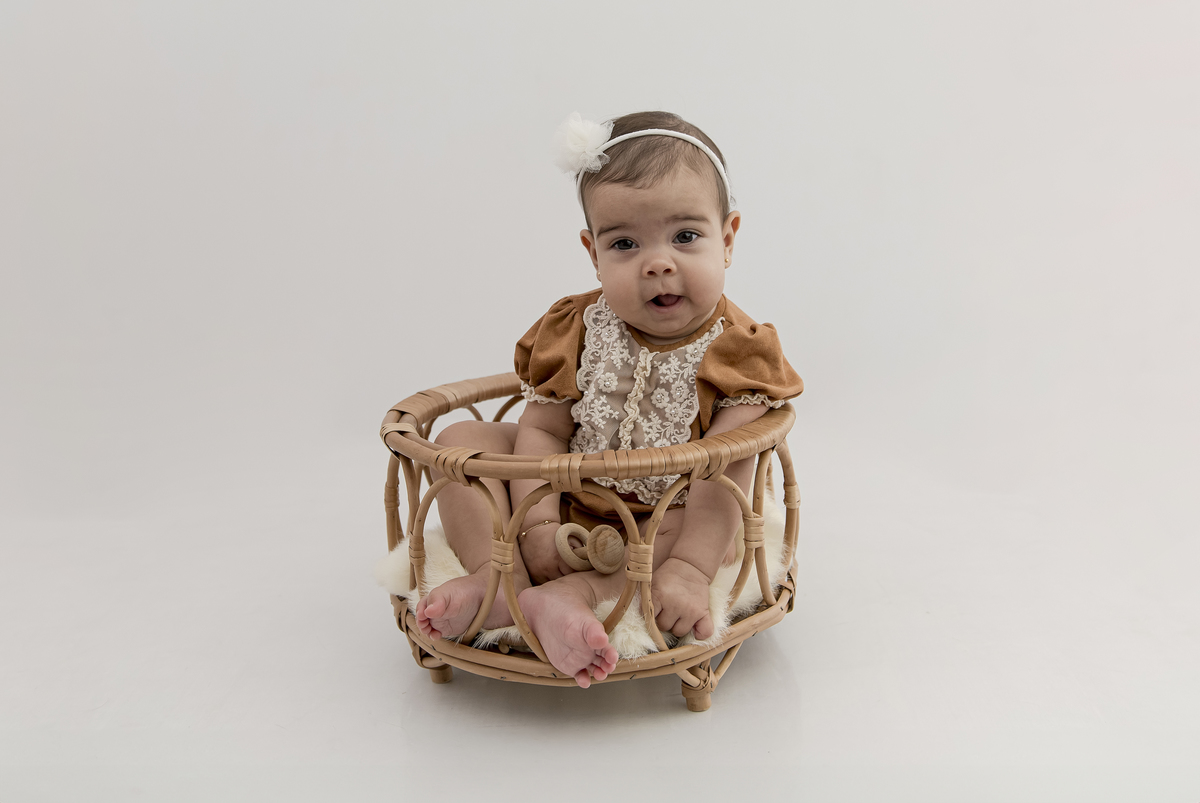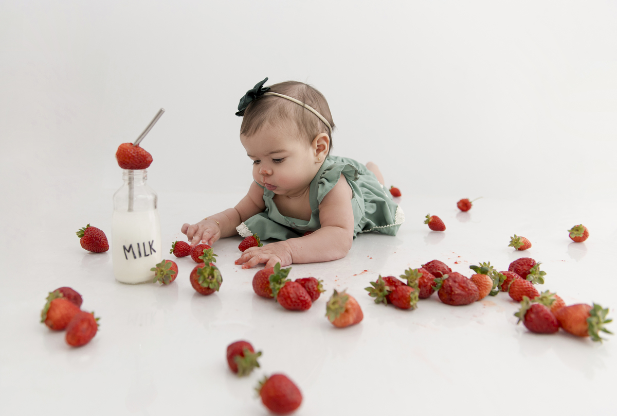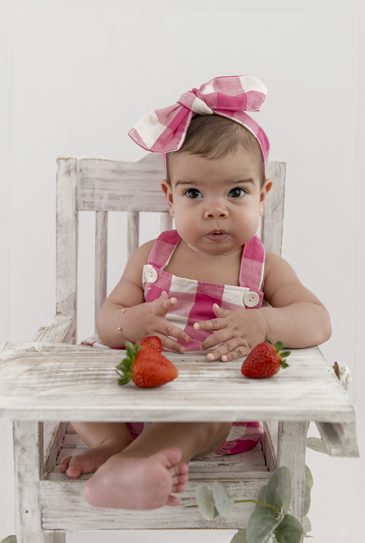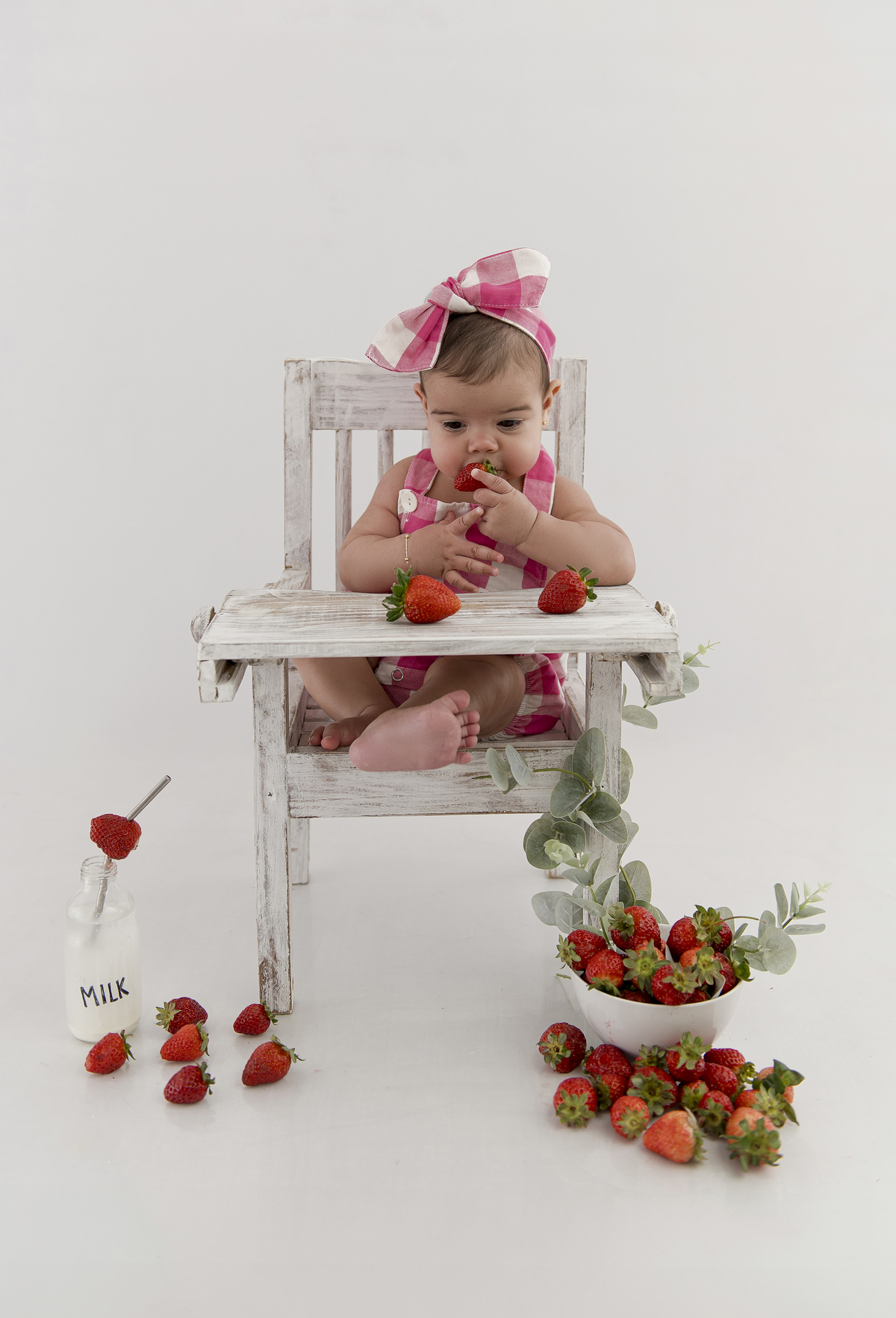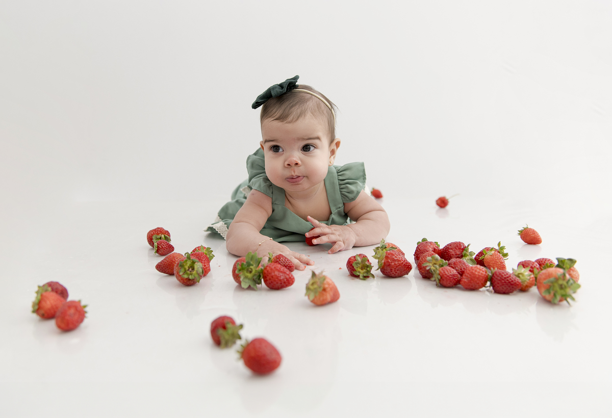 No acompanhamento trimestral, a mamãe pode optar pelo ensaio frutinha para registrar a introdução alimentar no sexto mês de vida do bebê!